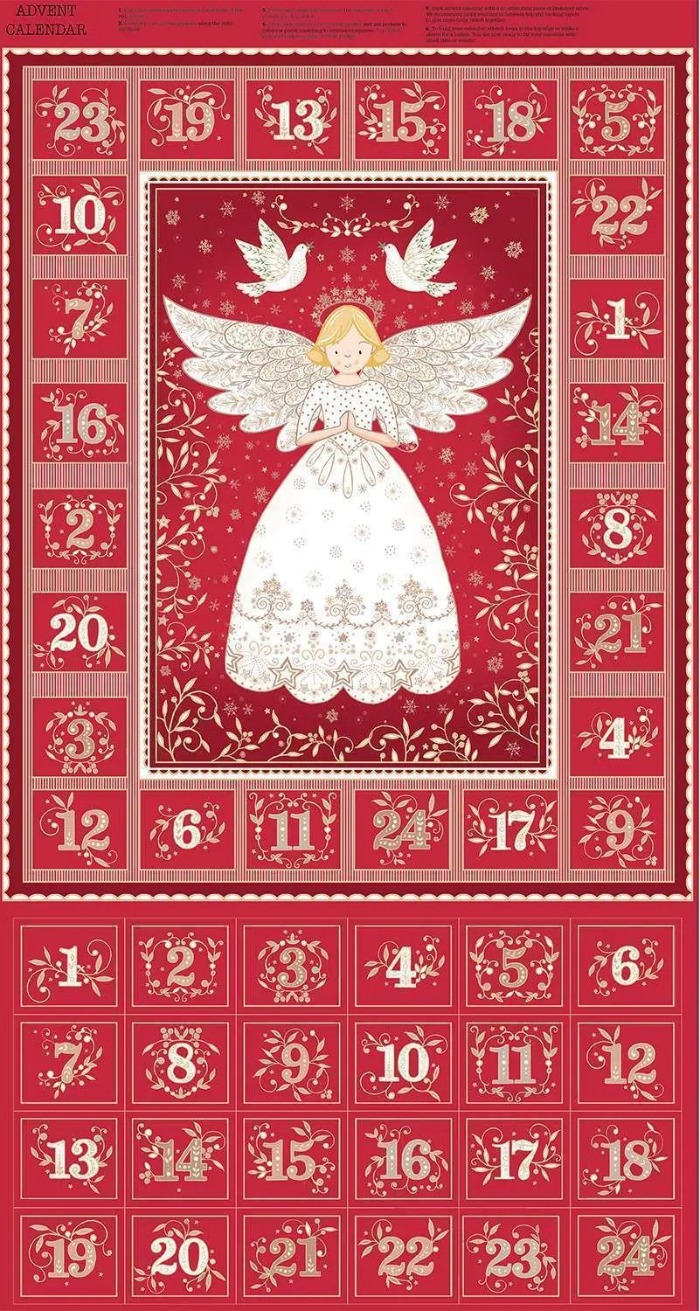Magomar Patch Panel Navidad – Calendario de Ángel de Adviento tono rojo y dorado 100% Algodón Makower