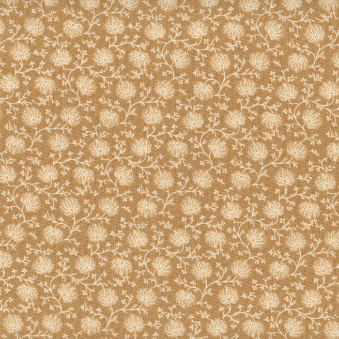 Joie de Vivre, de French General para Moda Fabrics, es una refinada colección de acolchados que captura el encanto francés atemporal. Evoca la elegancia campestre y celebra la belleza de los momentos cotidianos. Esta tela marrón té claro presenta cardos color marfil y extensas vides.