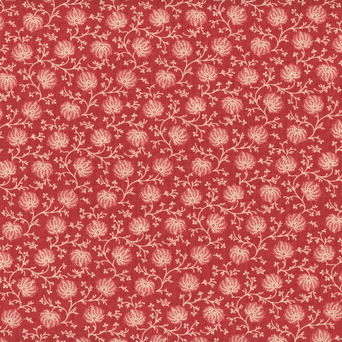 Tela colección Joie de Vivre by French General motivo flores rojas jacobeas con enredaderas en fondo rojo Ref.MP13982-13