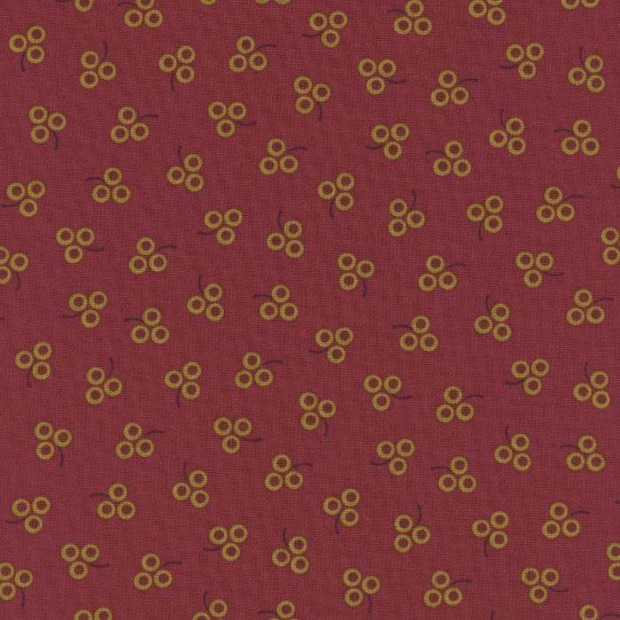 Magomar Patch Tela colección Pennyberry Farm de Kim Diehl motivo bayas doradas en fondo rojo intenso Henry Glass Fabrics 100% Algodón