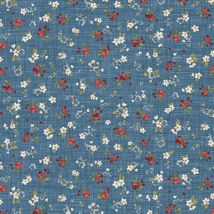 Tela Estampada Colección Farmhouse Sampler motivo estampado floral en fondo azul Ref.MP28605-44